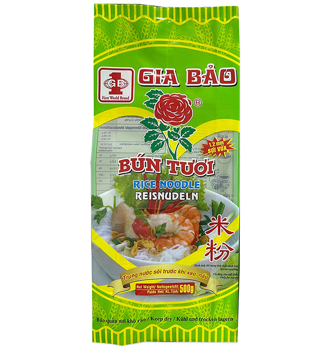 Authentische vietnamesische Reisnudeln in der klassischen Stärke von 1,2mm, ideal für traditionelle Pho, Bun-Gerichte und asiatische Nudelsuppen. Diese frischen Bun Tuoi Nudeln zeichnen sich durch ihre zarte Textur und ausgezeichnete Absorptionsfähigkeit aus, die Aromen und Brühen optimal aufnimmt. Die Nudeln sind vielseitig einsetzbar – ob in heißen Suppen, kalten Salaten oder gebratenen Gerichten. Hochwertige Qualität für authentische vietnamesische Küche. Im praktischen Karton verpackt für einfache Lagerung und Handhabung.